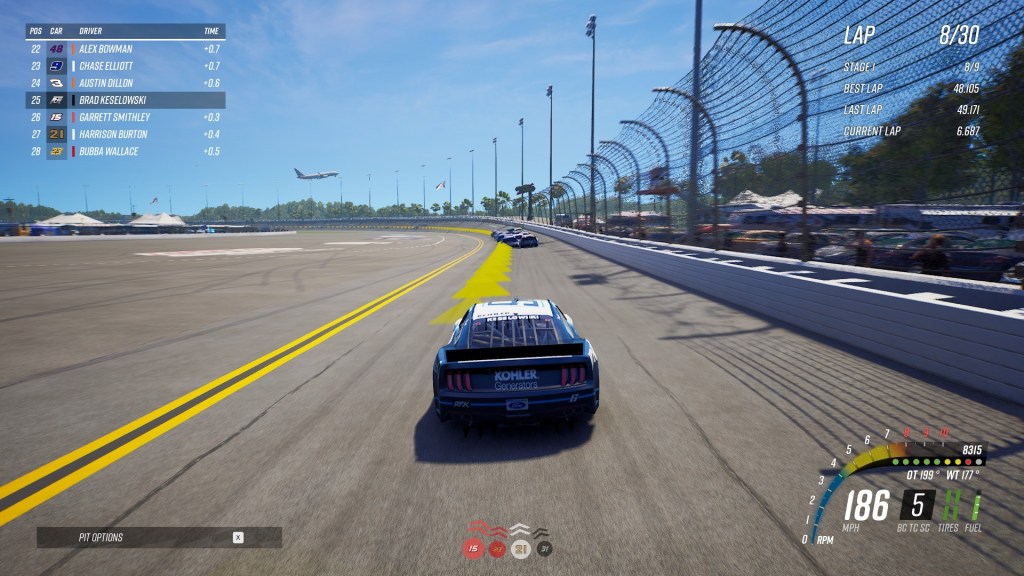 The car takes an eternity to get into the pit box so you will lose precious seconds going just a couple of feet and if you’ve got a flat tyre, the pit animation doesn’t show it.