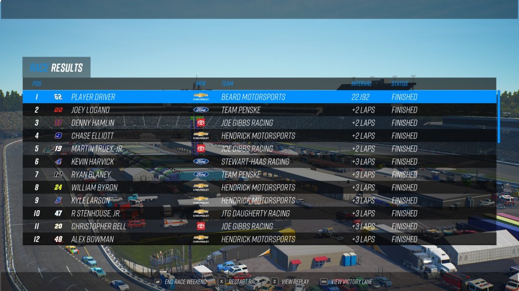 The field is slow to get going on road courses at the start and restarts so make sure you get off the gas upon taking the green flag and thread your way through by going fully to the inside or outside line otherwise you’ll slam into the back of the car in front, you should gain about 10 positions, after a while the race settles down and you can go for it though I have noticed the longer the races run for, the harder it is to keep pace.
