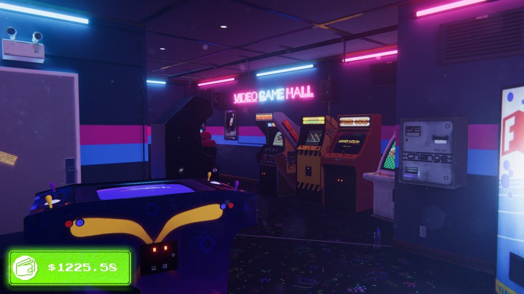 Here is the cool thing about Arcade Paradise, you can actually play the arcade machines while you’re waiting for the laundry to finish being washed and, in your office, you’ll get emails from rivals challenging you to beat their score.