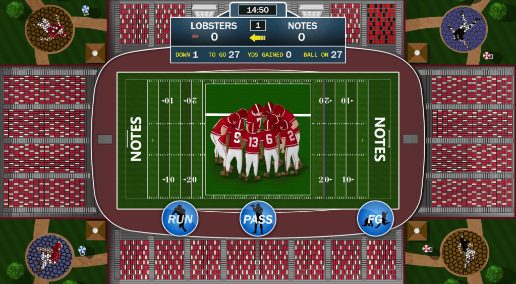 If no moves can be made, you press ‘Big Play’ to get a fresh card, after a few attempts the computer will make a big play for you, either it succeeds and you get a new card, the play is over or there is an inception or fumble.