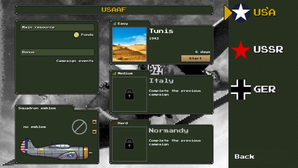 You have a choice of the USA, USSR and Germany and your choice of aircraft emblem gives your planes strengths and weaknesses.