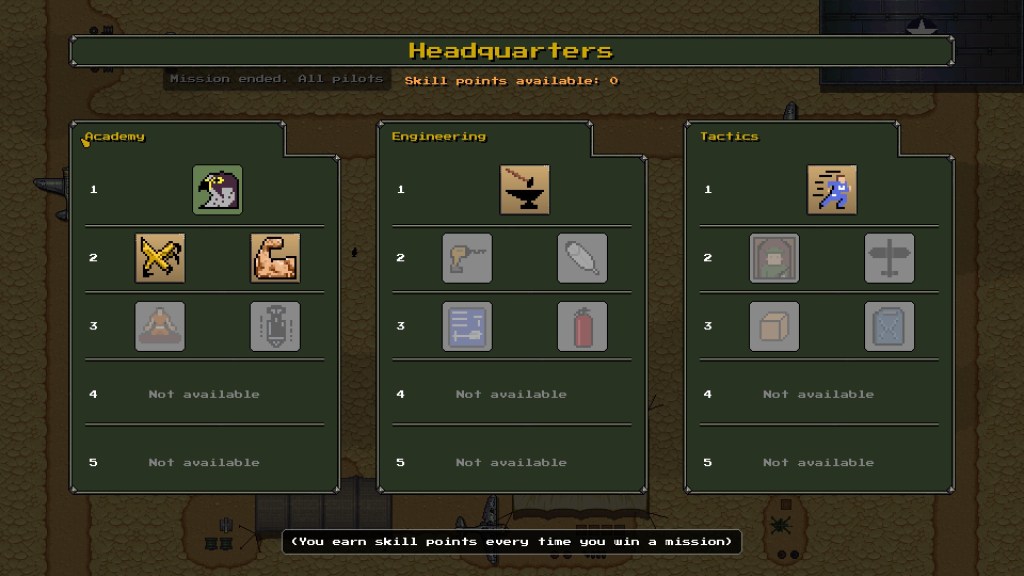 Skill points help make things easier for you and the money you earn from completing combat missions can be spent on buying new planes, fuel, spare parts and ammo, that’s why it is important to not throw all your planes into a mission if you only have to hit one or two targets as your planes can land and be rearmed, refuelled or be repaired.