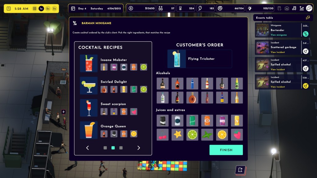 You don’t get everything at once in the game, you have to pay to level up sections like getting more advanced drinks or staff, this is important in order to get further into the game.