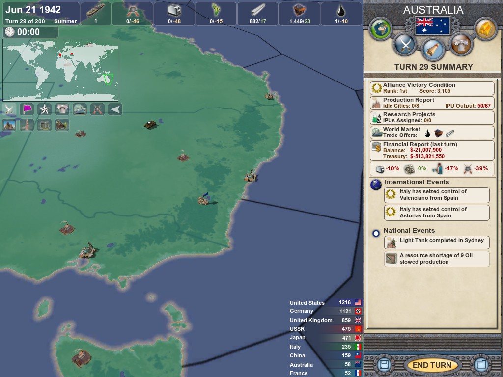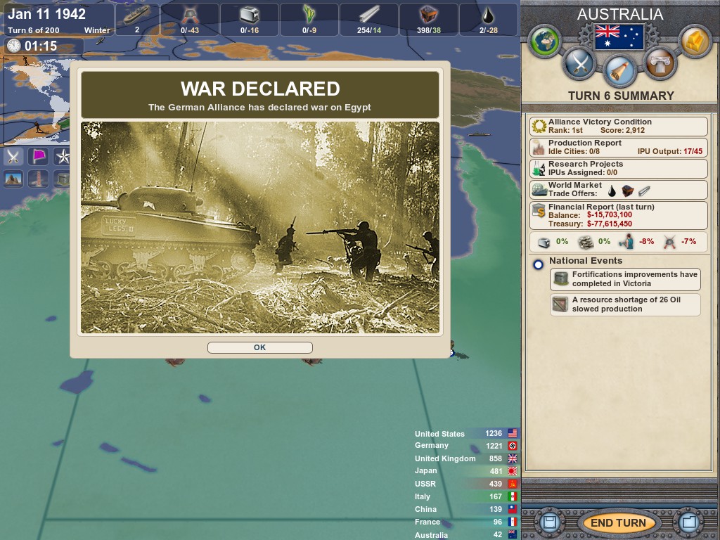 I chose to play as Australia in a scenario and I waited for the United States to take on Japan and my small army managed to take a chunk of Japan and even liberate Cambodia.