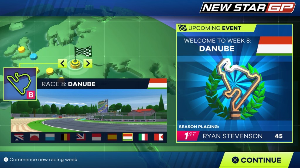 Each era has a ten-race season, progression is done by winning the season otherwise you spend another season in the era until you get that title.