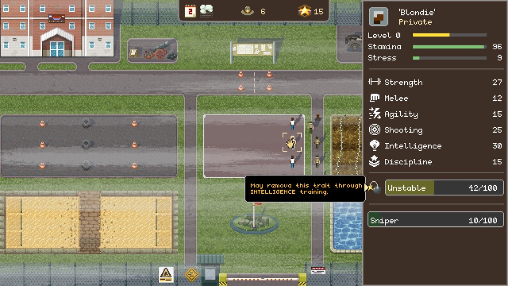 Each recruit has strengths and weaknesses, they also have traits that will limit their growth like nervous, unstable and fat and they will need a lot of specialised training to get rid of the trait.