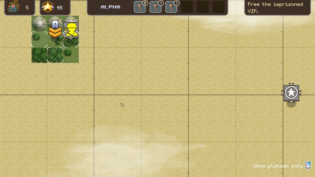 Each move in a mission costs you one of your supplies, you can avoid enemy soldiers up to your objective, there are also supplies you can pick up, caves to explore and villages to visit along the way.