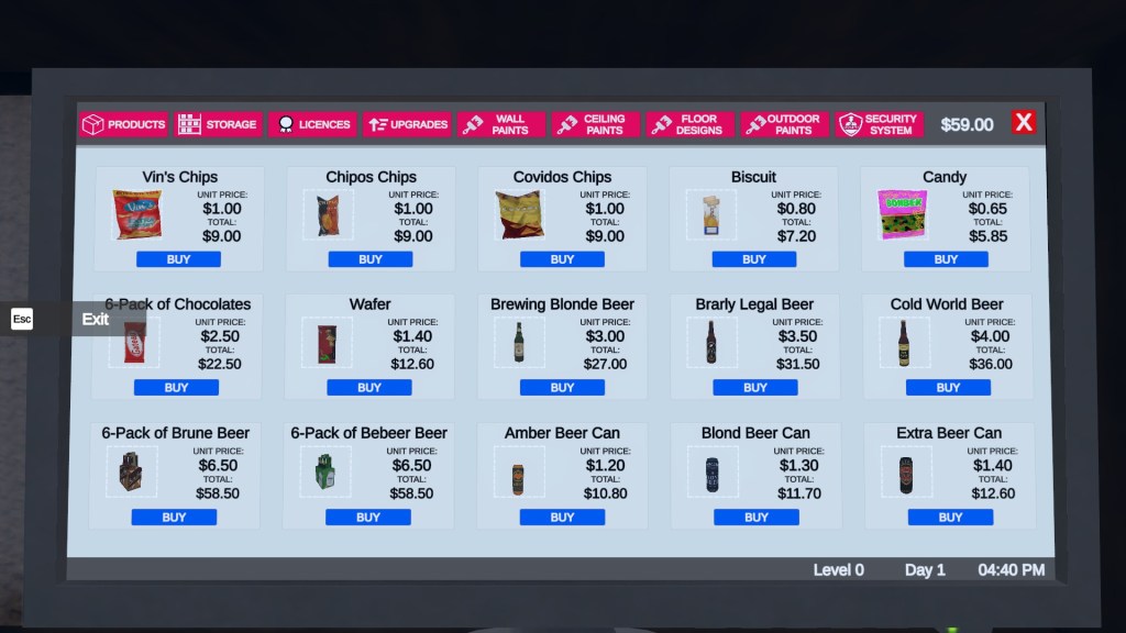 You have your booze shop and a little bit of money, enough to buy some cases of beer and maybe some food.