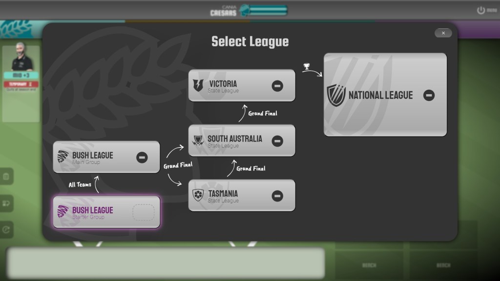 You start off in the basic bush league and work your way up to the National League, each league has a greater difficulty and present new challenges.